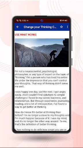 Unlock the Power of Positive Thinking with Strategic Thinking: Mind Power Techniques! Enhance your mental strength and unleash your full potential with our comprehensive guide to the power of positive thinking. Get inspired by the power of thinking big, and learn how to turn your dreams into reality. Stay motivated with daily cards featuring powerful affirmations, and read the "Power of Positive Thinking" book. This book is also available in Hindi for a truly personalized experience. Maximize your mental performance with strategic thinking techniques, and discover the power of thinking without thinking, as detailed in book "Blink". The power of thoughts is immeasurable, and with this Strategic Thinking app, you'll learn how to harness the power of positive thinking to achieve your goals and live a happier life. Don't miss this opportunity to unlock the power of positive thinking and achieve success. Download Strategic Thinking for Success: Mind Power Techniques now!"